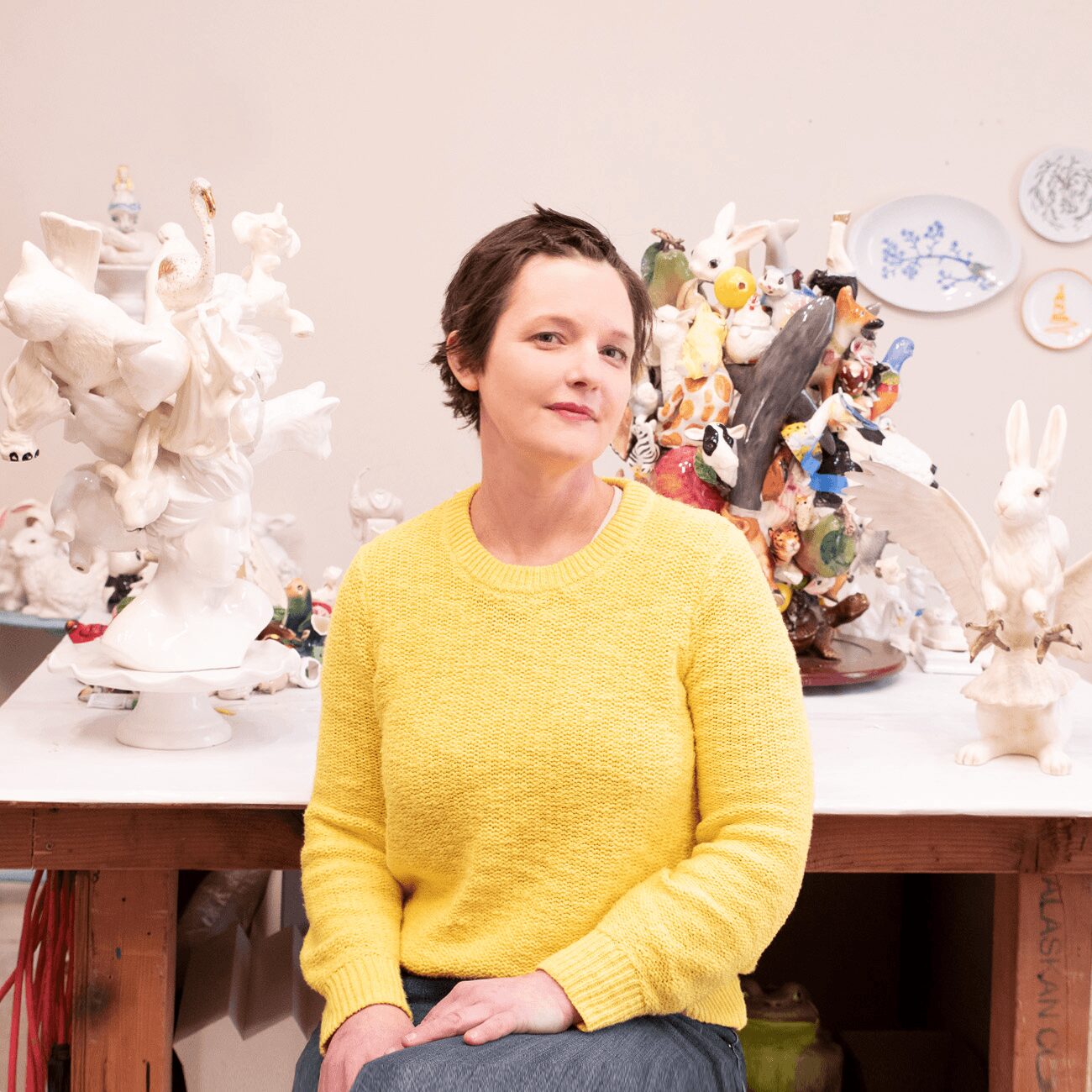 Debra Broz creates sculptures that twist cultural norms and create new narratives meant to express delight in the uncanny, sentimental, and absurd. Broz grew up in rural Missouri and received her BFA with honors from Maryville University - St. Louis in 2003. Shortly thereafter, she moved to Austin, Texas where she trained as a ceramics restorer and began using ceramic figurines in her art practice. Broz moved to Los Angeles in 2014, and then to Seattle, Washington in 2022. She has shown her work with multiple galleries and museums including the American Museum of Ceramic Art, Austin Museum of Art, and Houston Center for Contemporary Craft. Her work has been featured in print in Ceramics Monthly, American Craft, and Frankie magazines; in a number of online publications; and in two international surveys of contemporary ceramics. In addition to her art practice, Broz owns a ceramics restoration business; has served as a board member and advisor for art nonprofits in Austin and Los Angeles; and has been involved with several artist-run spaces over the course of her career. She lives in Seattle, Washington Find out more here